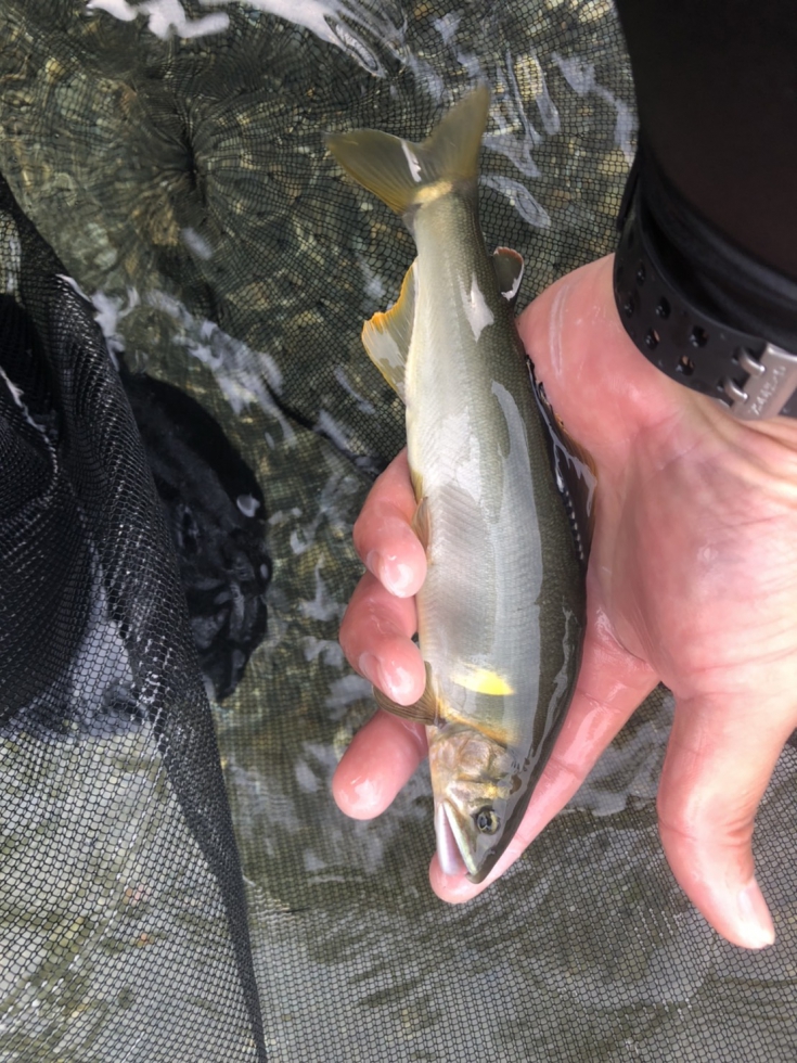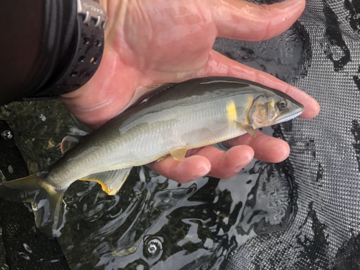 藻がらみを防ぐことでオトリを弱らせる事なく、確実に鮎の反応だけをポツポツと拾っていき夕方に終了。