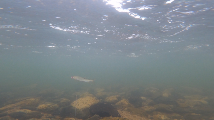 時々大きな石周りでギラリと身を翻すアユの姿がちょくちょく見えたので、大きくなったアユは苔を食むようになったのかもしれません。