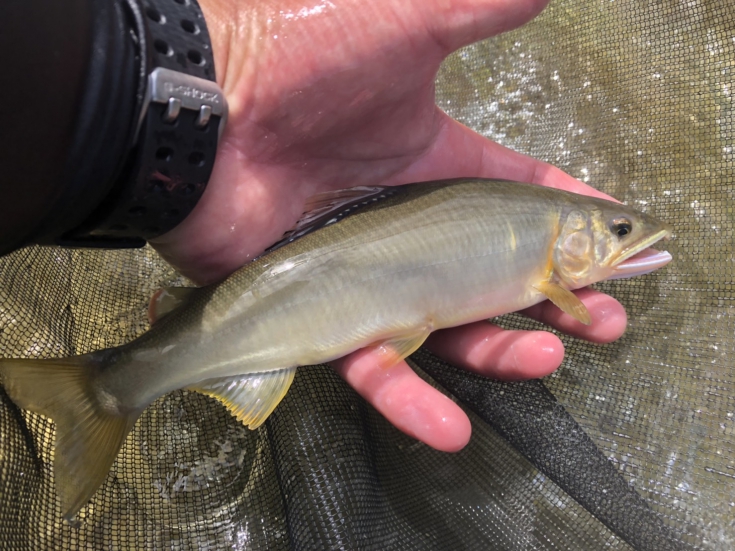 先週までの梅雨の長雨で少し水温も低く白川状態となっていました。