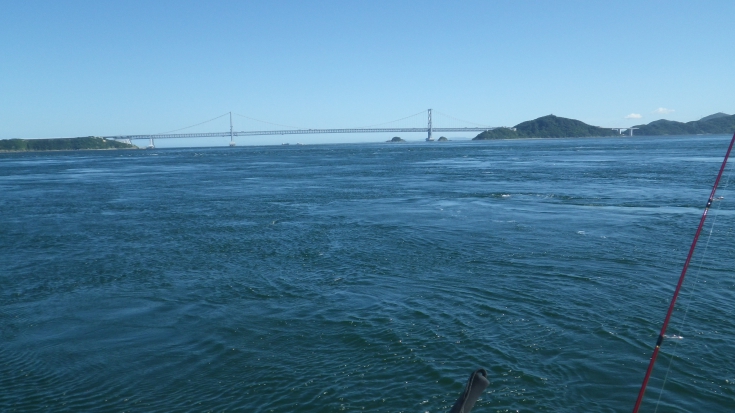 潮止まりに場所を北側に移動する途中の潮筋では、ゆっくりの流れとうねりがぶつかり合い凄い波高でしたが、橋をくぐり抜けれるとべた凪。