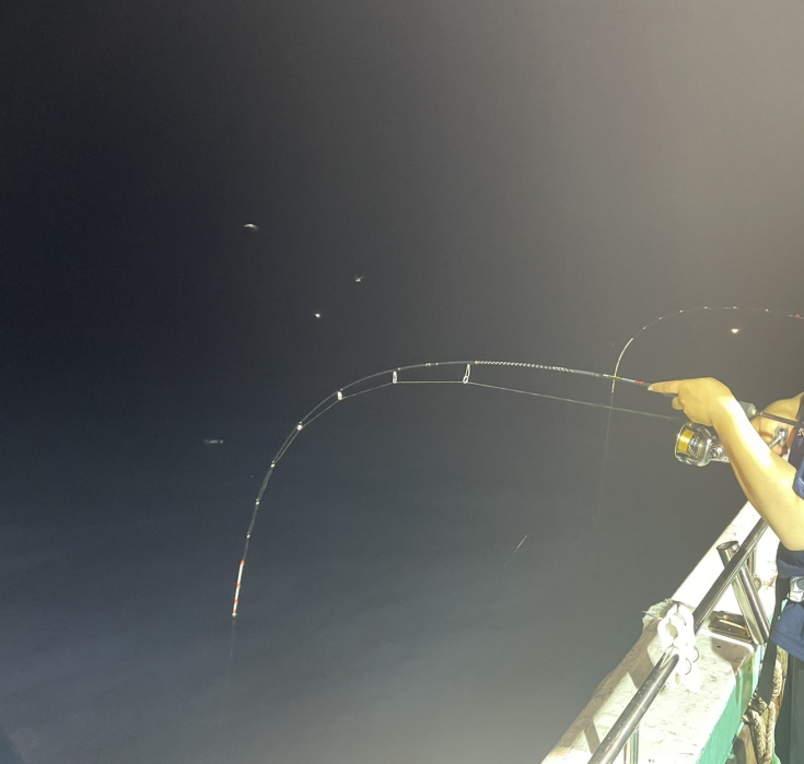 そして集魚灯が灯され、次第にベイトが集まり、本格的にスタート♪