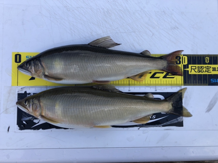 33㎝ 1本、32㎝2本、30.5㎝3本、30.4㎝1本と合計7本の尺鮎をキャッチに成功。
