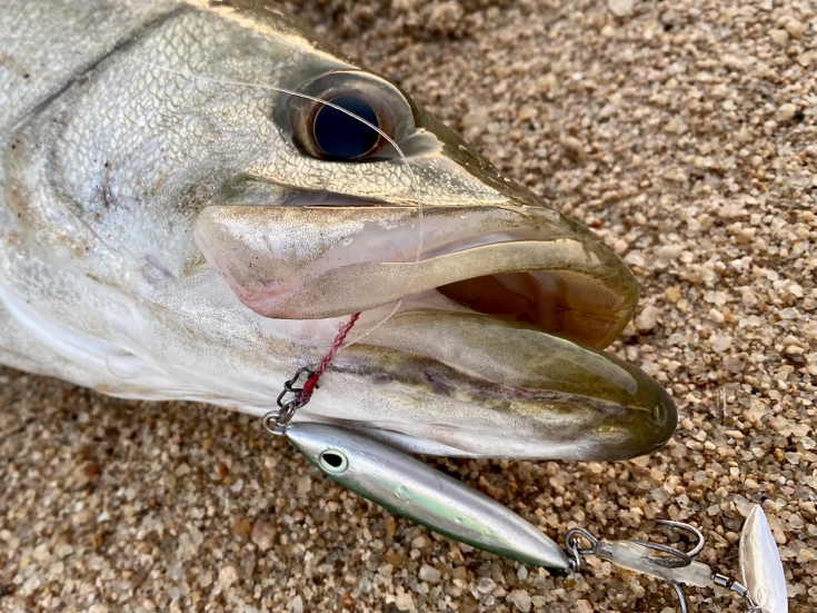 ところで、メタルジグを遠投するスタイルのシーバスゲームの場合、エラ洗いによるバレの心配が常に付きまとう。ヒット直後の水面でのヘッドシェイクで、フックオフしてしまうケースが頻発しやすいのだ。
