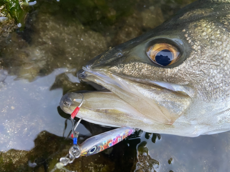 早引き以外では何をしてもヒットするので、フックを変えたり、ジグの重量を変えたり、時々ダイビングペンシルを投げて遊んだり(笑)