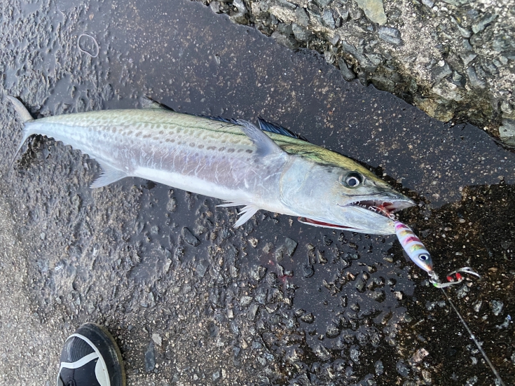 移動していると漁港でサゴシを釣っている人が見えたので、またも投次郎のブレードジギングで狙うと、あっさり80cmアップのサワラもヒットし、この日は納竿。