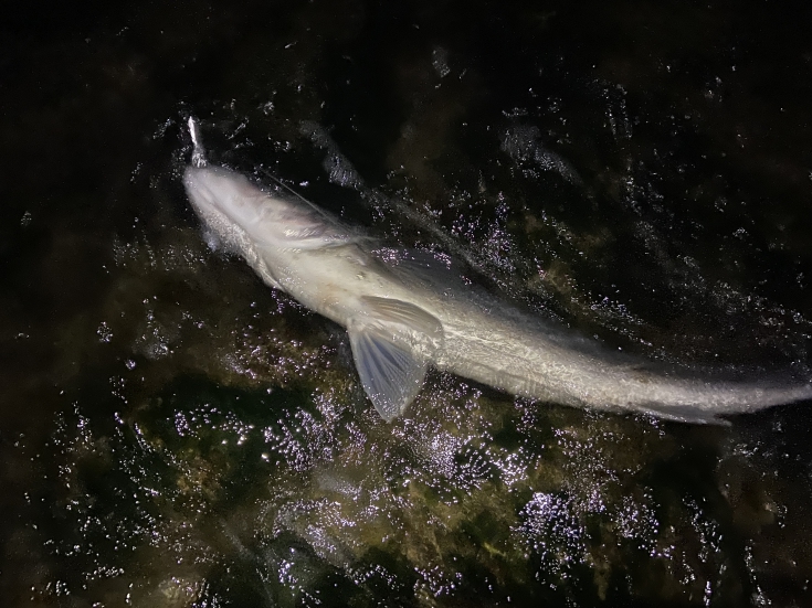 その後渋谷君が実家へ向かったので、少しポイントを100mほどずらすも、回遊の波はあるもののシーバスは釣れ続きました。