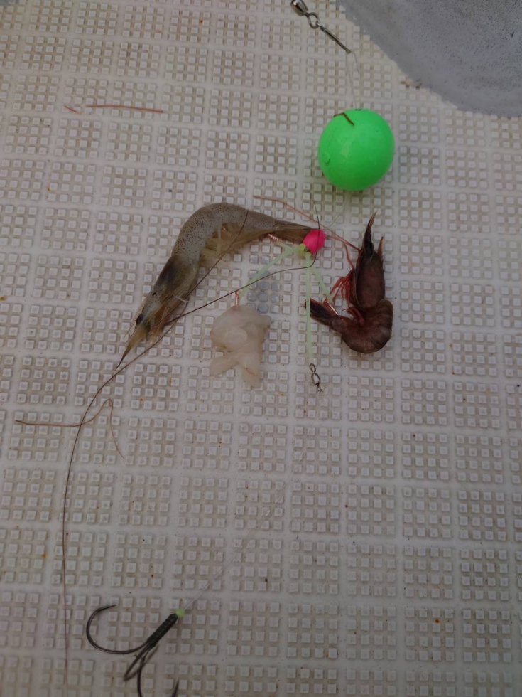 チラシ仕掛のメリットを活かし、餌は海老(殻付きの小型海老)2種&アルゼンチンアカエビのむき身でスタート。