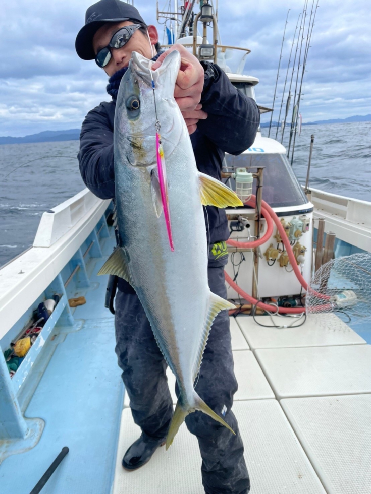 この時期のブリ狙いの場合、サンマを追っていることからボトムから最低でも30mくらい中層までをスイミングイメージで誘いあげたほうが効果的な場面が多く、斜め引きが得意なジャーキングスタイルが有効です。