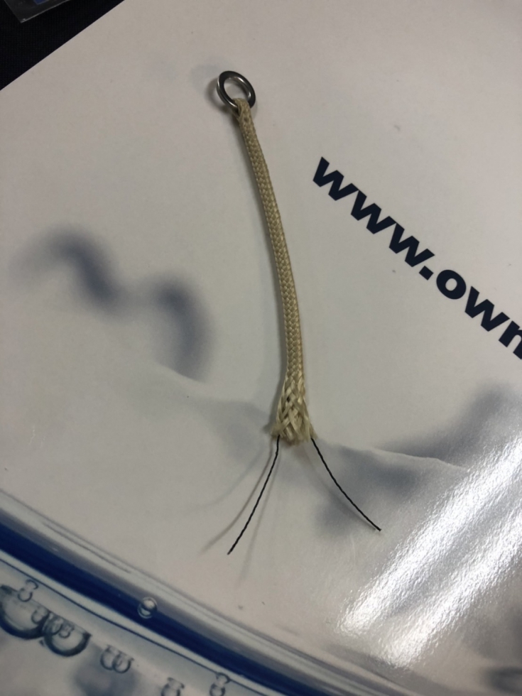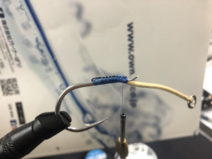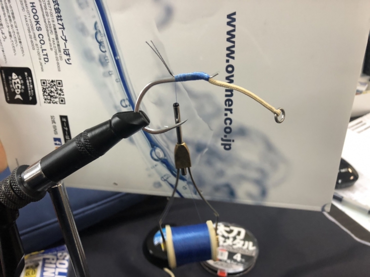 ④チェイスを組糸に貫通させてから2cmほどタイイングを行います。