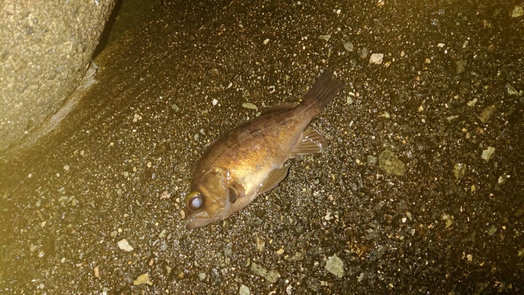 ついてすぐは潮も動いておらず、気配はあまりなかったですが、潮が変わり始めるとメバルの魚影が見えてきました。