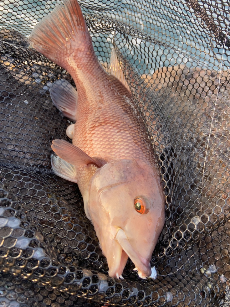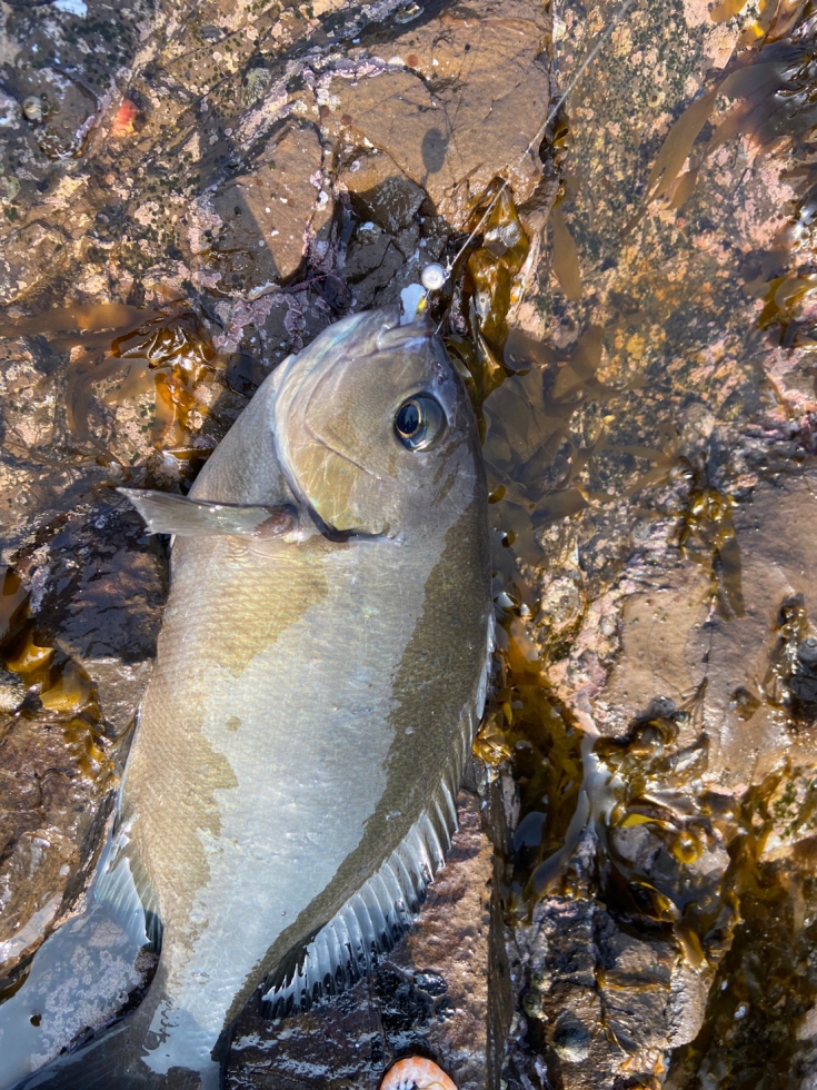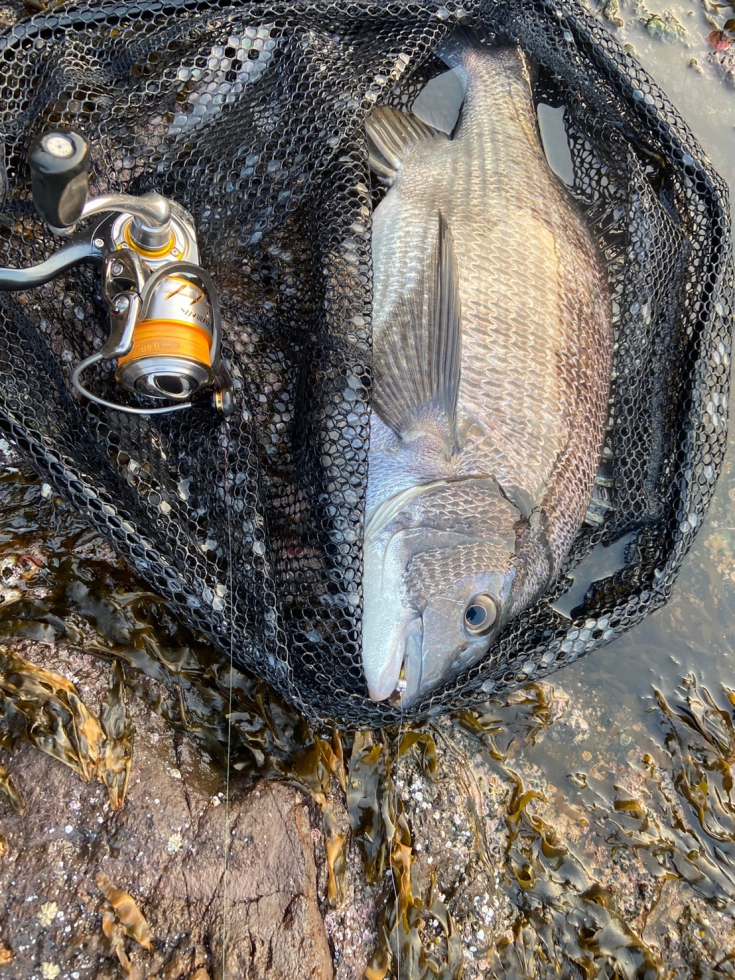 後から聞くと近くの磯でマダイが2匹上がっていたので、マダイの可能性が高いかと。