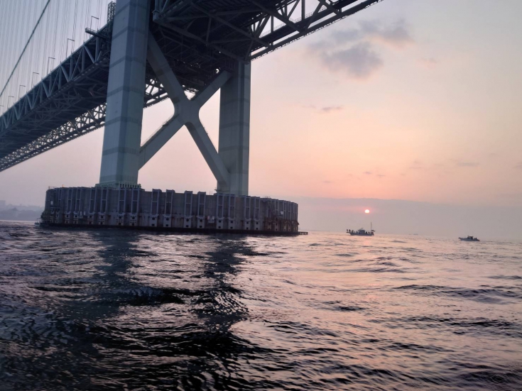この日はユルユルの潮なので、ポイントは明石海峡大橋周辺の激流エリア。