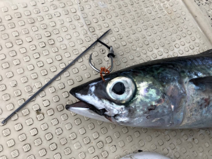 やはり泳がせタックルで効率よく餌を釣り上げるには、もっと太ハリスの仕掛けが必要ですね。