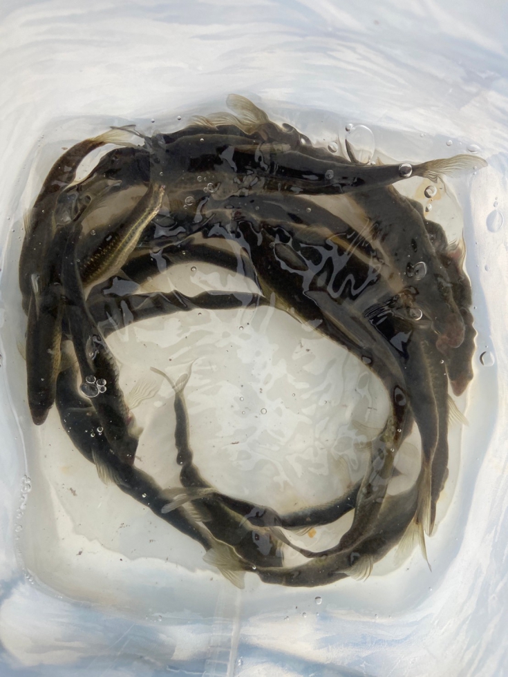 当日は昼からタナゴ探索へ行く予定でしたが、投げモロコが好調で、お腹がパンパンの大型も混じって9時までに20匹ほど釣れたので、人も増えてきましたし、早めにホンモロコ釣りを切り上げてタナゴ探しへ行くことにしました。