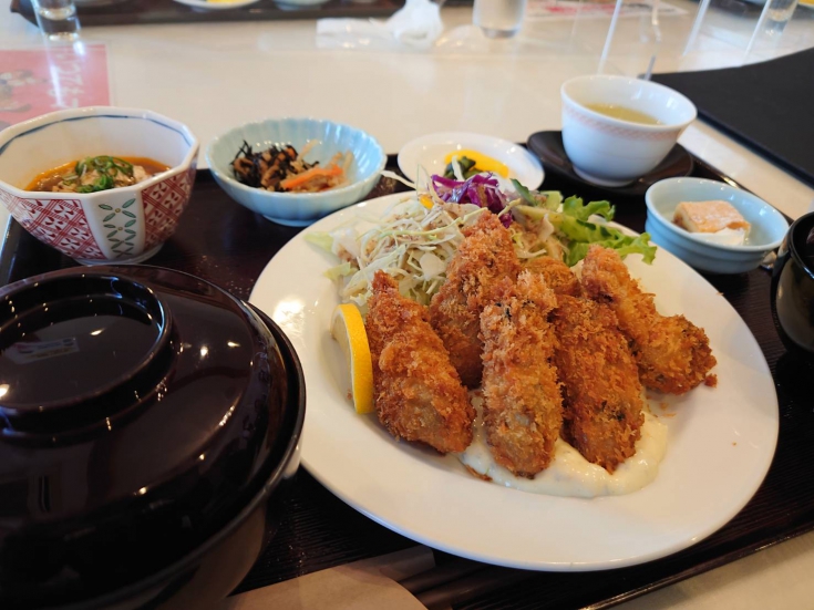 こんな時は、名物の牡蠣を食べて帰ろうと言う事で牡蠣フライ定食を堪能。