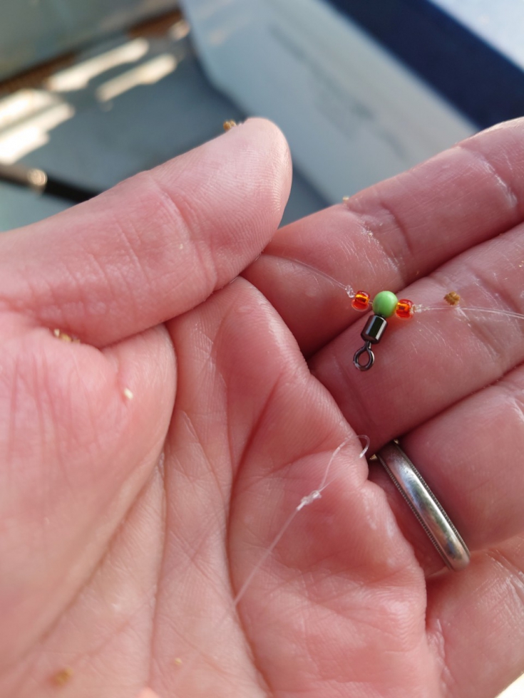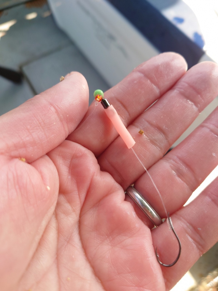 置き竿は投げて待っておくだけなんですが、キャスト後、着水して直ぐに仕掛を引っ張って、絡みを防ぐ様にするのと、着底したらエサが埋まってしまうので、少し引っ張ってやる事で釣果が変わると常連さんからアドバイスを貰ったので早速実践!