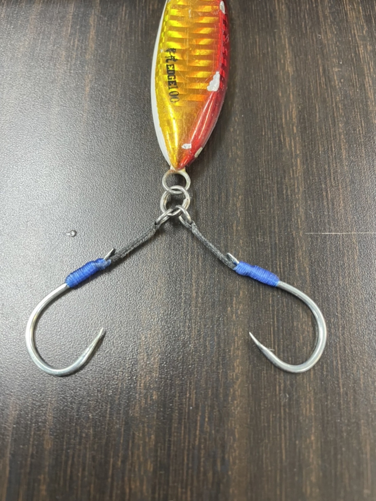 ただの3本鈎仕様ではなく、真鯛の口周りの柔らかい所に多点掛けするような段差セッティング&ジガーライトマダイ向う合わせと早掛の適材適所な使用とこだわり仕様です。