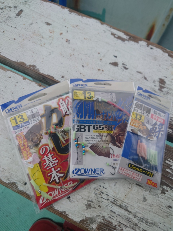 使用仕掛は『船カレイの基本』を中心に、天秤が固定式の『剣剛カレイGT65-3』や『GBT65-3剣剛トーナメント仕掛』を使用。