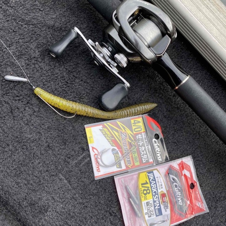 ヒットルアーはロングワームのフリーリグ。今年もこのセッティングにはお世話になりそうです。
