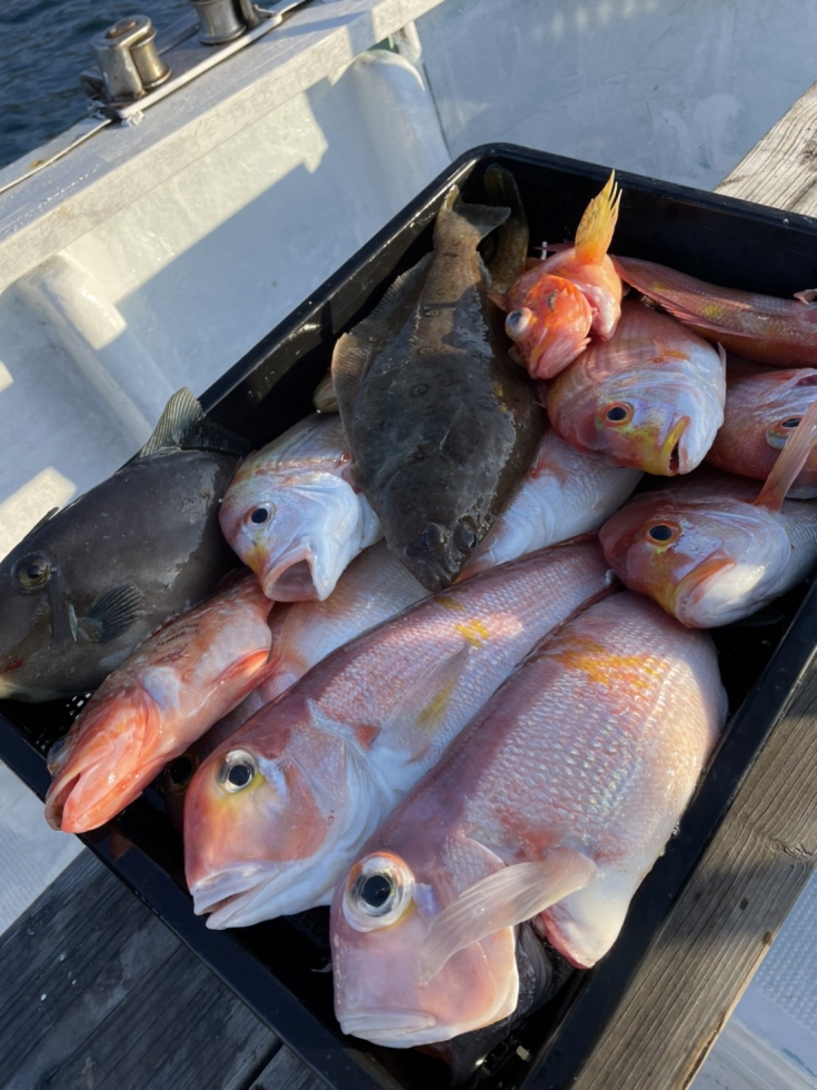 漁礁周りで根魚やウマヅラハギなどを、泥地エリアではアマダイを狙っていきます。