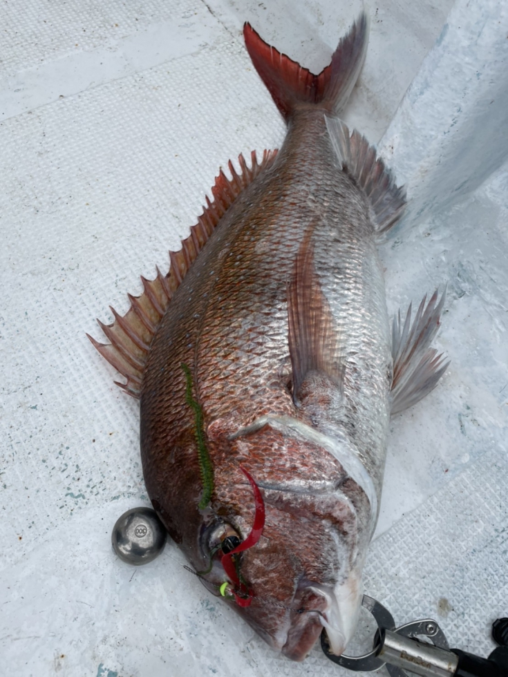 しかし感度の割にはヒットしないので、ネクタイカラーなどのパターン共有し、さらに私は船が流れないときに必ずと言っていいほど試す軽量ヘッド&スピニングタックルでのキャスティングタイラバ!