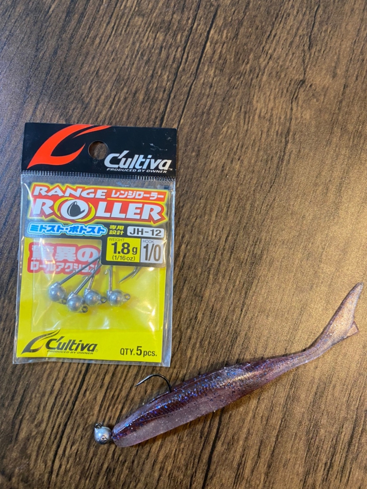 ヒットルアーはジャスターフィッシュ+レンジローラー1.8gのミドスト。