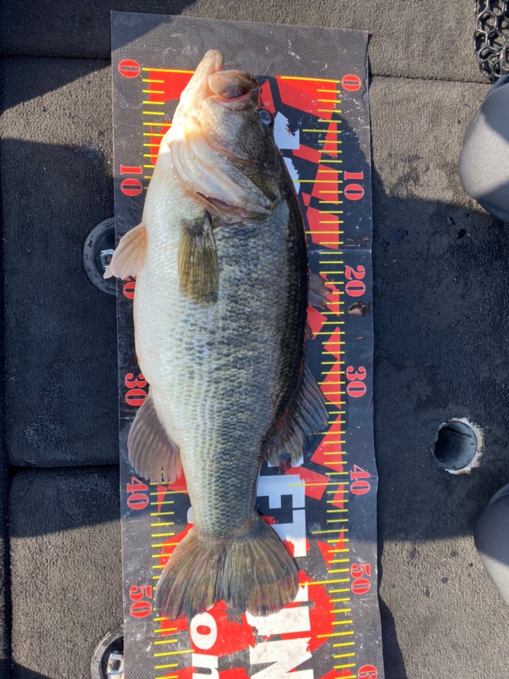 初めてのバスボートでいきなりのナイスバスに船中は大盛り上がり!本人も大興奮の1匹でした!