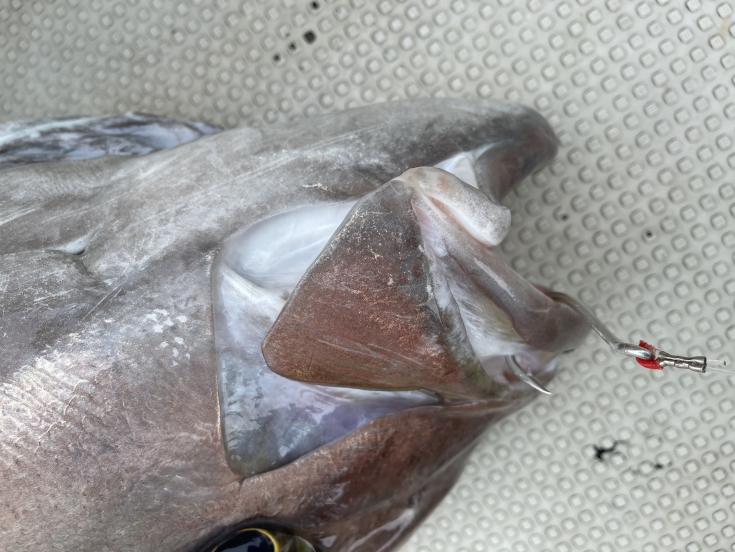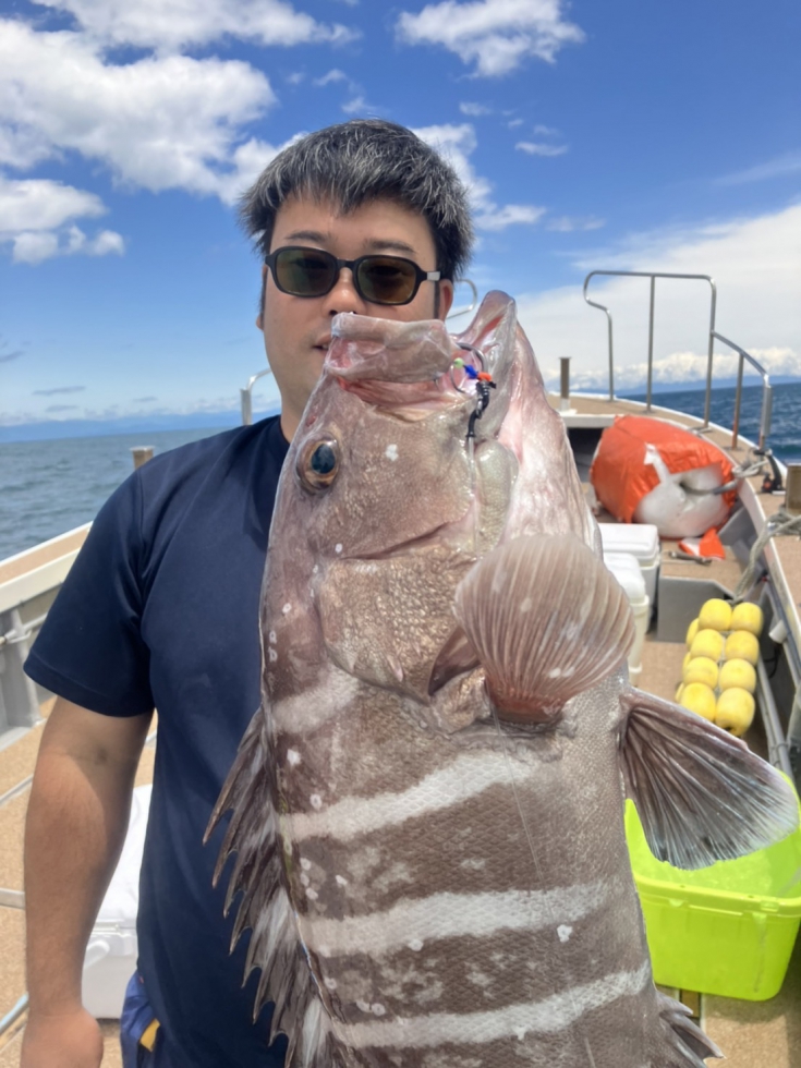 以前に来た時は、全国的には珍しい大型のオオスジハタを釣らせていただきましたが、今回はプリスポーンの大型クエ狙い。