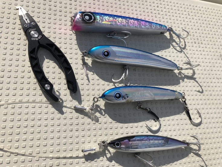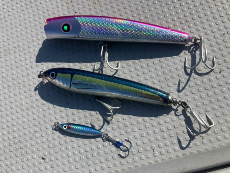 ルアーもポッパーやペンシルの200ミリ〜の大型のものと150ミリ前後のものと2パターンは必ず用意し、余裕があれば食わないナブラ用にシンペンタックルとお土産用にカツオタックルがあれば万全です。
