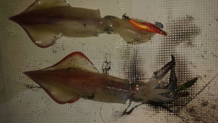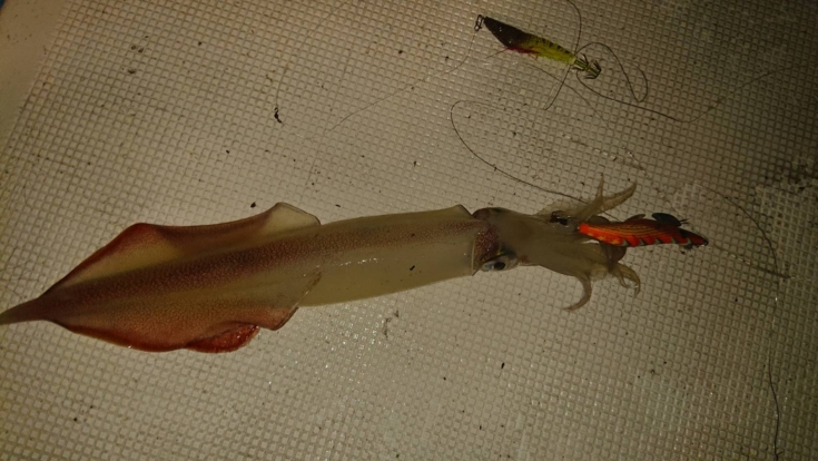上がってくるイカの大半は触腕の2本のみのフッキングが多かったです。