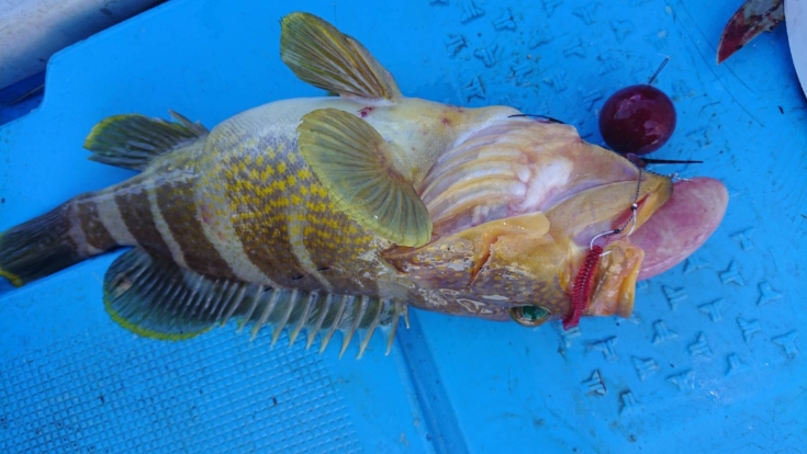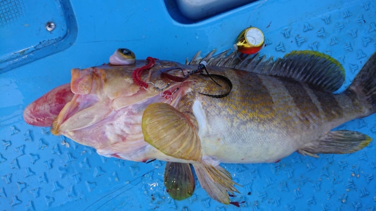 その後風と潮が合い、シンカー200gでも底とりがボケ出したので、300gに変更。