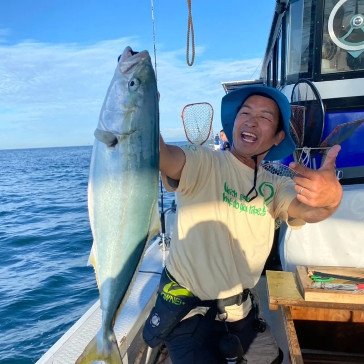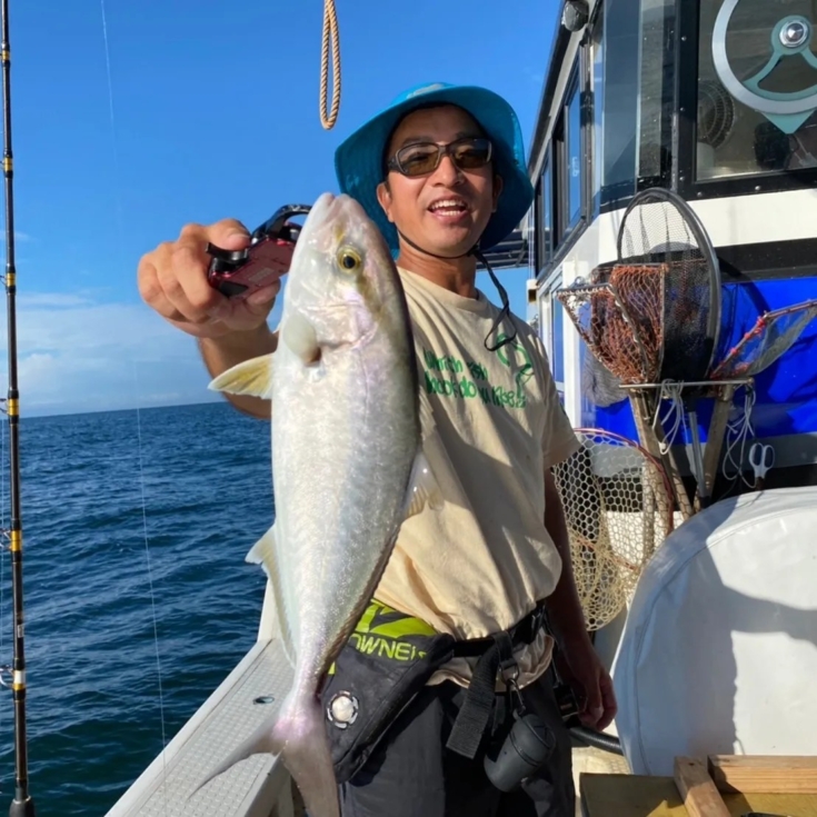 暫く流していると同船者にファーストヒット!メジロ。これに続けと本命のアタリを待ちます。
