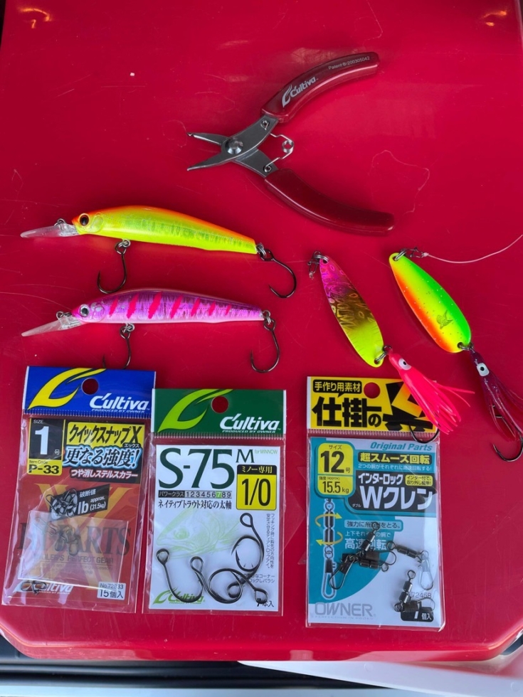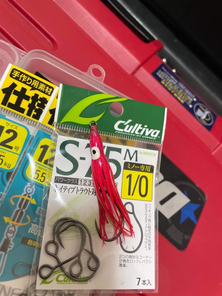 またスプーンはインターロックWクレン12号のスナップスイベルにS-75M 1/0のシングルフックをつけてニードルを使いタコベイトを装着しておきました。