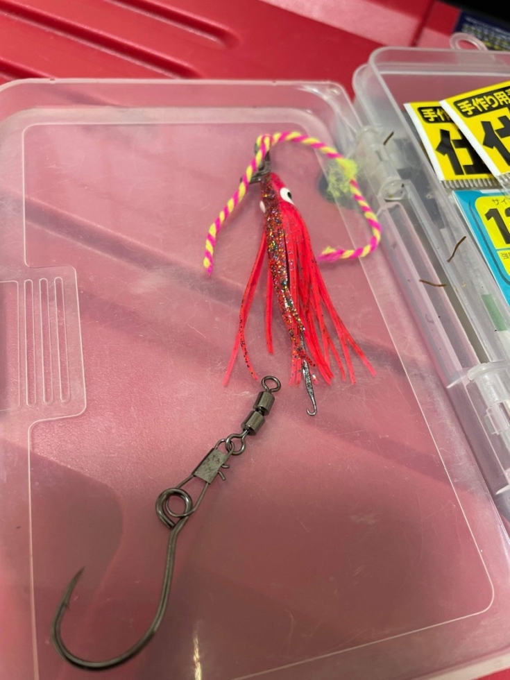 最初はシュガーディープ2/3 -92Fピンクゼブラにフックを規定のシングルフック、S-75M #1/0に替えてセットします。。