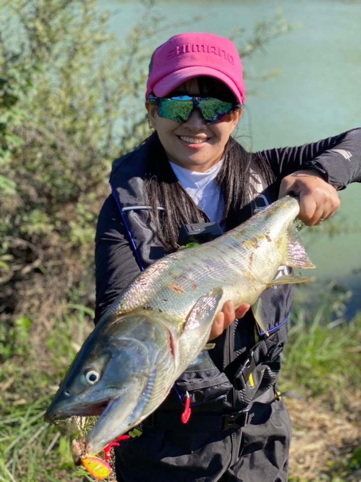 そのあとも川の中央でも手前の際でもサーモンのアタリがあり、同様のスプーンで75cmまでの4尾のサーモンを攻略しました。