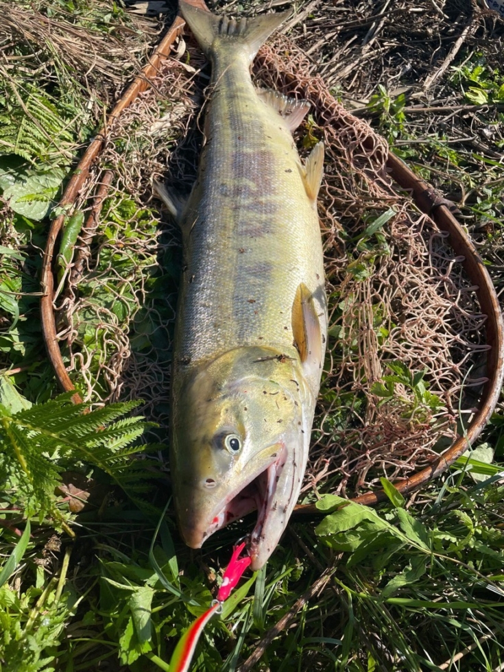 先ほどからミノーで探っていた辺りでしたので、やはり当たりの正体はサーモンだったのでしょう。