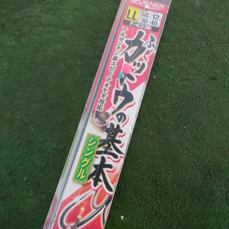 使用仕掛は、実績の高い『カットウ一角フグチラシ』別売のオモリをセットすればすぐ釣りが可能なセット仕掛で、とりあえず初めての方はこのアイテムを使ってもらえれば良いかと思います。