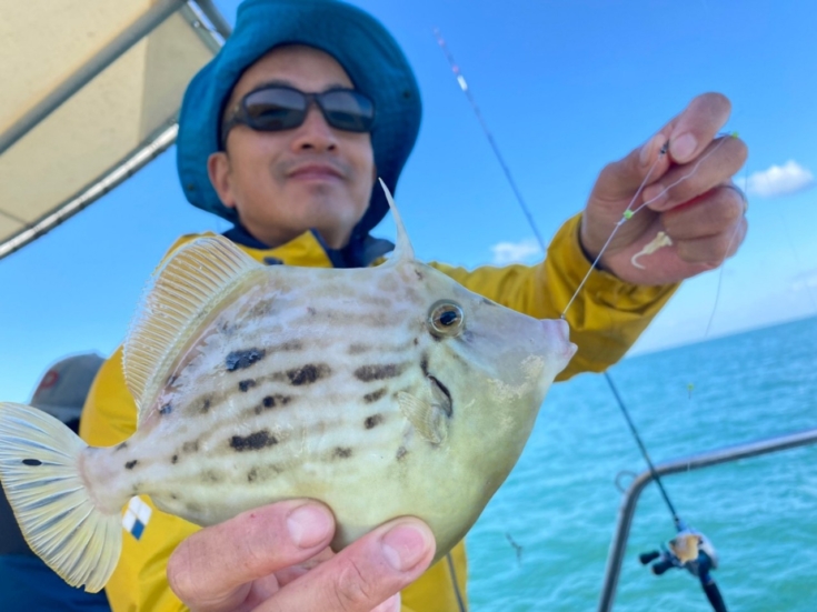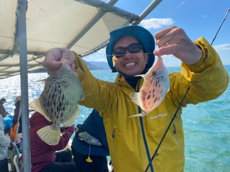 この日はウマヅラとカワハギのリレー便と言う事で、2種食べ比べが楽しめるとワクワクの出船です。