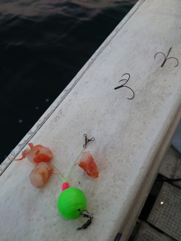 餌はアルゼンチンアカエビのぶつ切りを剥き身でセット。