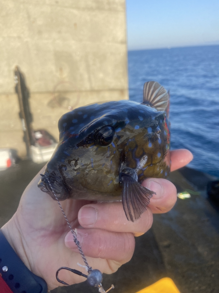 が、本命らしきアタリはなく、エサ取りのフグにキタマクラ、ハコフグ、シラコダイ、ガシラなどがポツポツ掛かるのみ。