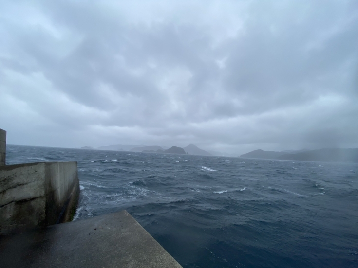 雨天強風のためか客は私たち2名だけでしたので、出船を遅らせてもらって5時半に出船。