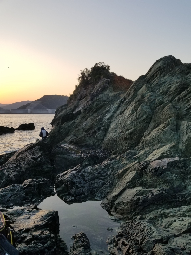 このエリアについては、「沖の島」と「地の島」と二つの島があり、それぞれの島に磯が点在し、この時期ならばチヌをはじめ真鯛や大型コブダイなどが狙えます。秋口は良型グレも狙え、良い潮に恵まれれば中型の尾長グレも釣れるとのことで、地元の方をはじめ、大阪や兵庫の釣り人もたくさん訪れます。