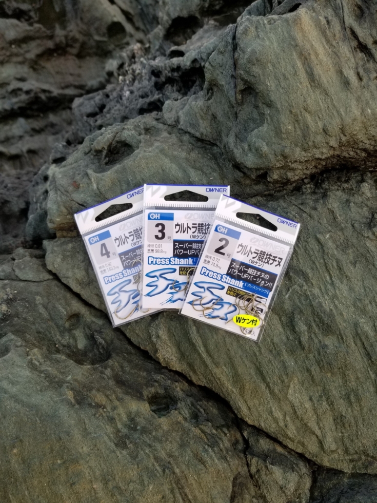 また、時折高切れやハリス切れするシーンが幾度かあり、それをなんとかモノにしたい為、ハリスを2号、ハリも「ウルトラ競技チヌ4号」に変更し大物へのアタリに備えました。