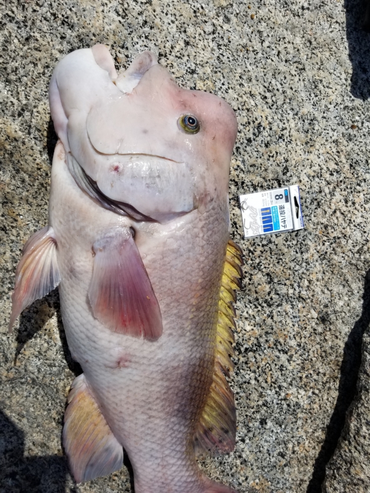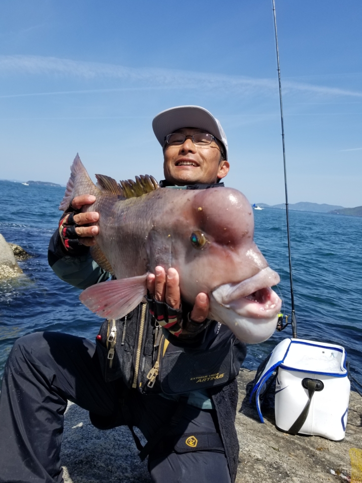 軟調のチヌ竿を目一杯ブチ曲げ、耐えに耐え奇跡的にも取り込むことができたのは、コブは立派な体高のある70クラスのおコブ様でした。