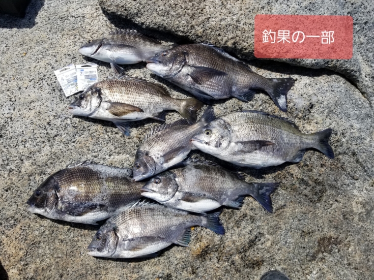そして、このコブダイを釣り上げてからしばらくして、沖合から徐々に潮がさしてきたので、遠投で狙うと30cm前後のマダイ、チヌが再び釣れ、15時の納竿まで満喫することができました。