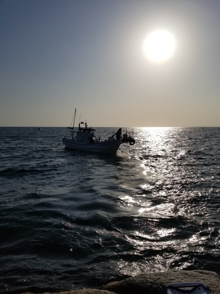 午前7時30分頃、江頭さんのご厚意で、私と一緒に来られた内野さんと二人で、津田で名礁と謳われる「トウフ」へ渡礁しました。