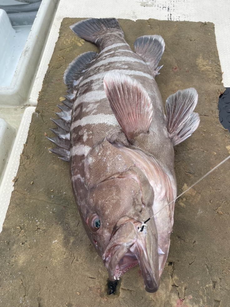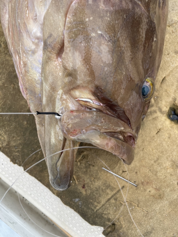小型のハタが大型のサバエサに当たる時は底物の活性が高い時が多いので、仕掛をやや浮かせ気味の6mにあげるとコレが正解でした。