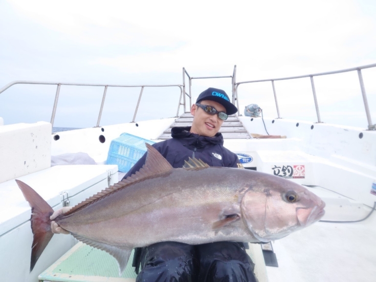 激しい攻防の末、なんとか攻め勝ち浮上したのは立派な本カンパチ25kg。