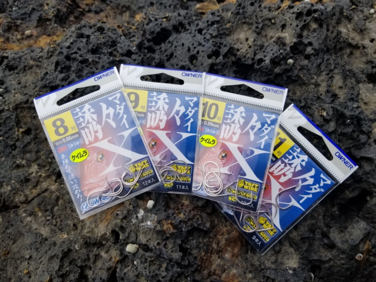 「誘々マダイ10号」で釣りましたが、中軸線径と鯛狙いに適した基本形状を踏襲しているので、オキアミが刺しやすく、誘いをかけた後に違和感なく食い込んでくれるので、今回のような中型イサキ・マダイ・グレと他魚種が混じるカゴ釣りシーンで、使い勝手のいいフックだと実感。