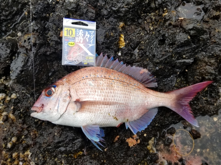 その作戦が的中したのか、まずは小型のマダイが釣れました。